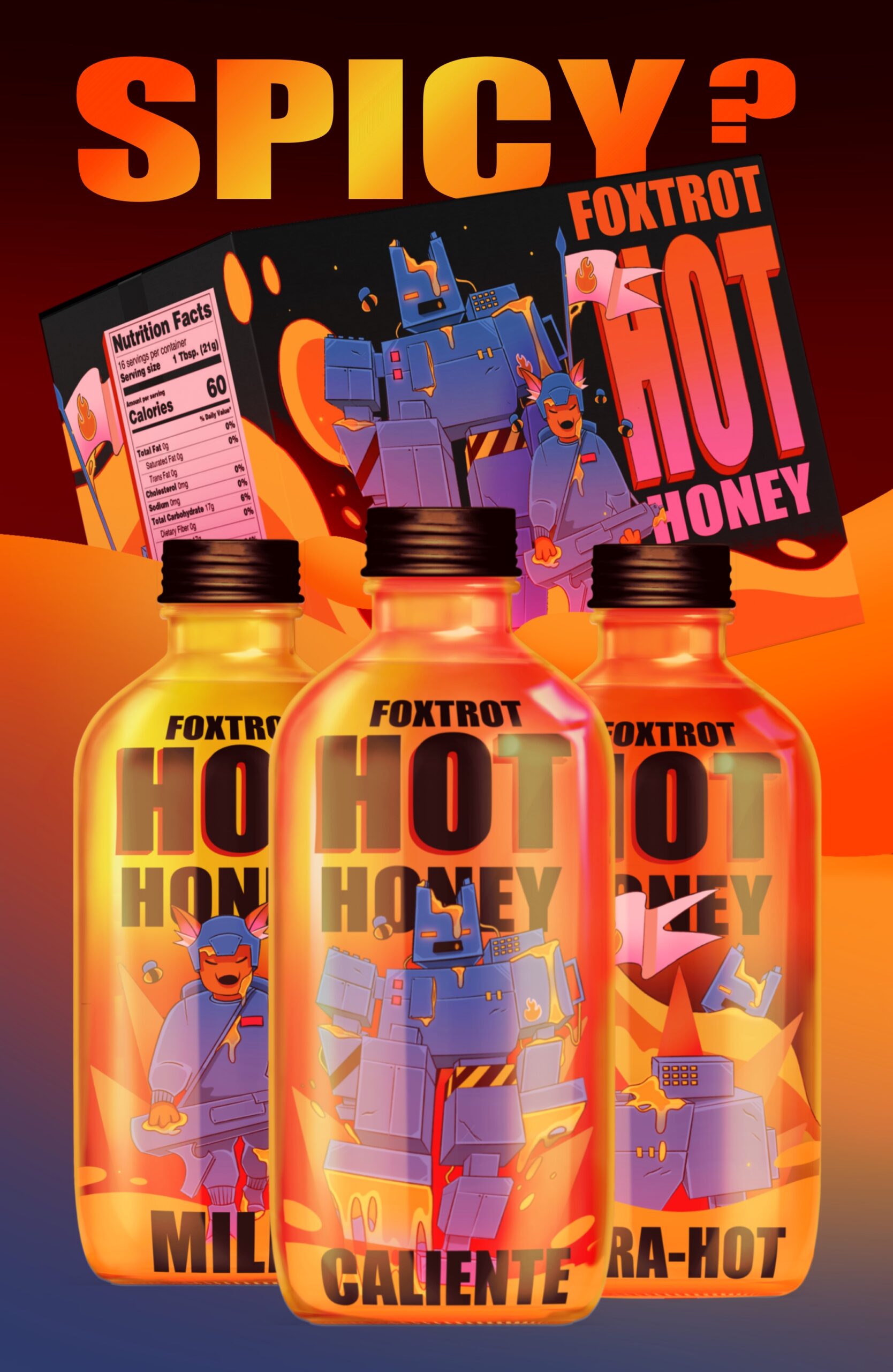 Foxtrot Hot Honey is an original concept for different levels and flavors of hot honey. This student project called for an understanding of color and marketing in relation to the type of product. The goal was to generate a bright and eye catching visual representation to showcase the flavor of hot honey.